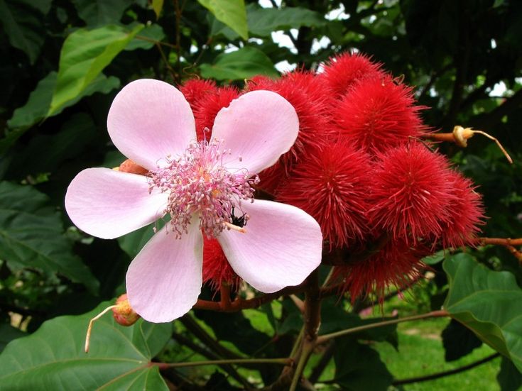 Blooming: Produces pink-white flowers followed by spiky red seed pods in summer.