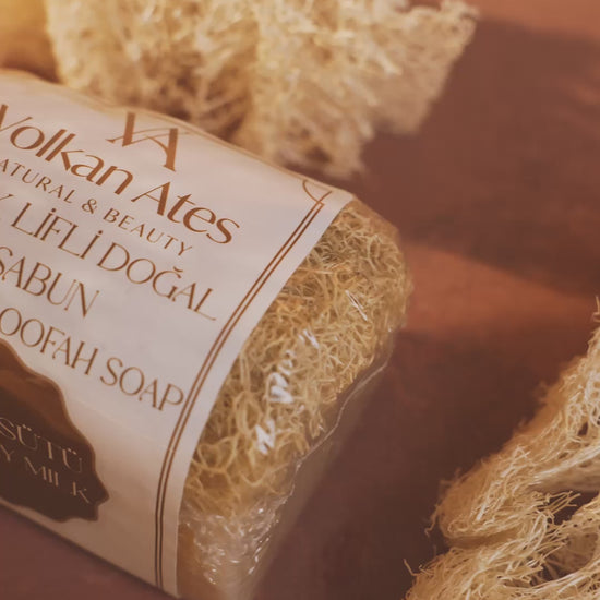 Volkan Ates Natural & Beauty Donkey Milk Loofah Soap combines the purifying exfoliation effect of natural loofah with the nourishing properties of donkey milk. While deeply cleansing the skin, it helps reduce dryness and supports the skin’s natural balance.