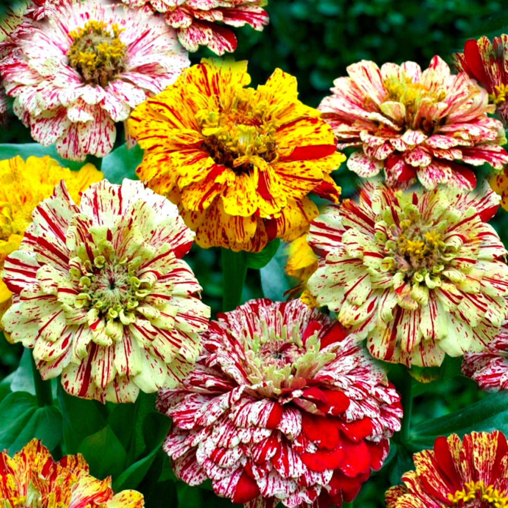 Seeding Zinnia Dahlia 'Peppermint Stick' Mix (Zinnia elegans) is an easy, fast-growing way to get eye-catching, dahlia-flowered blooms in a mix of striped and speckled patterns—red, cream, pink, yellow, and orange. These tall, full zinnias are great for cut flowers and pollinator gardens.